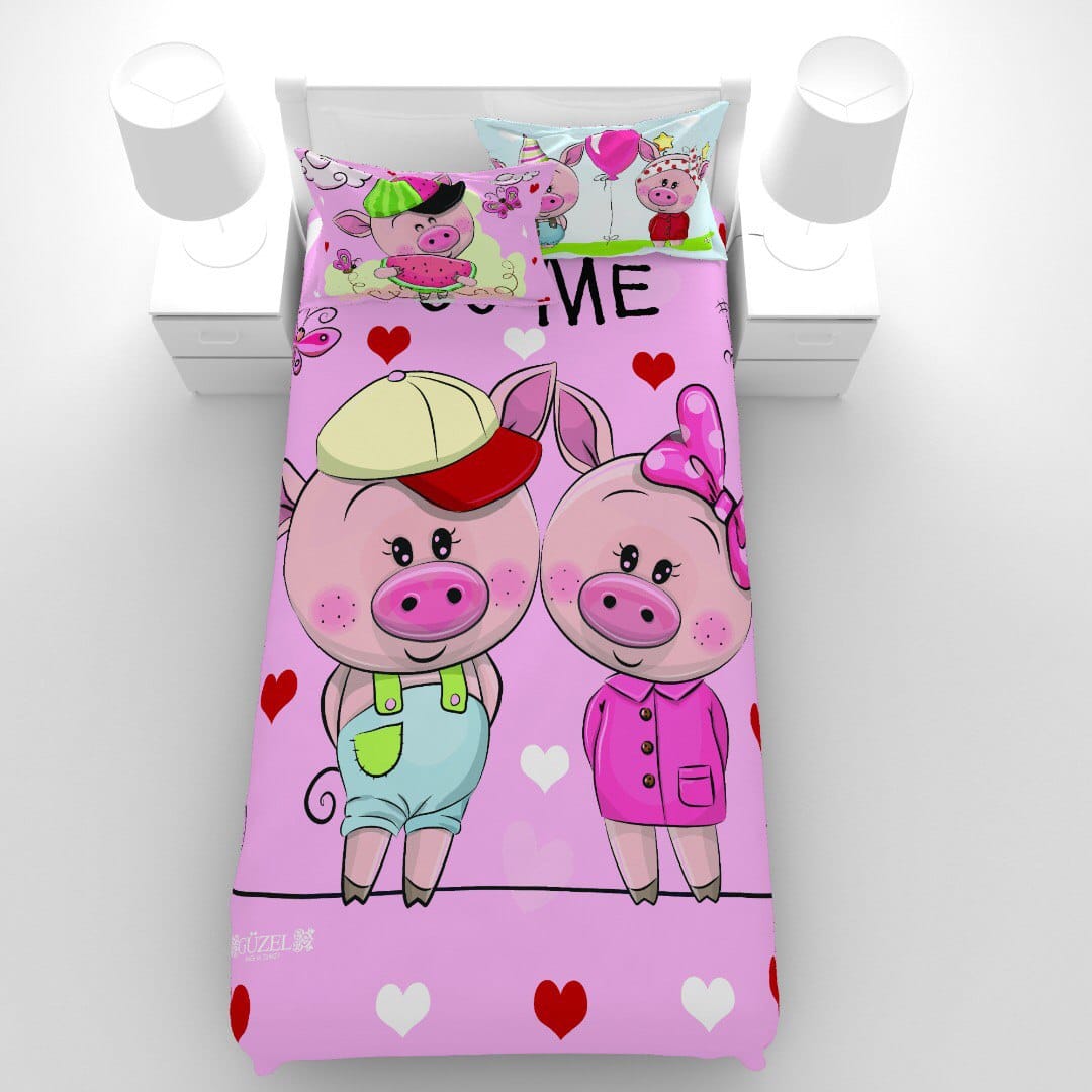 ۵تیکه(۲عدد روبالشی طرح دار+ملحفه کش دار با قطر ۳۰ سانت+کاور لحاف و لحاف)